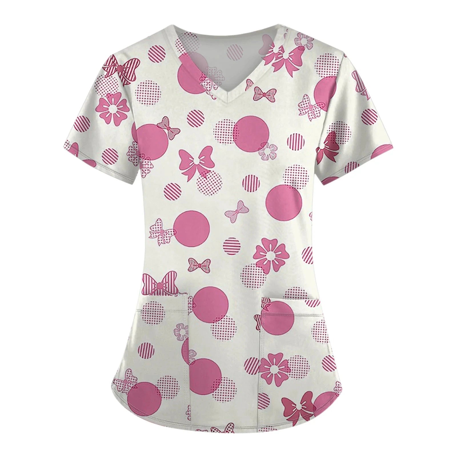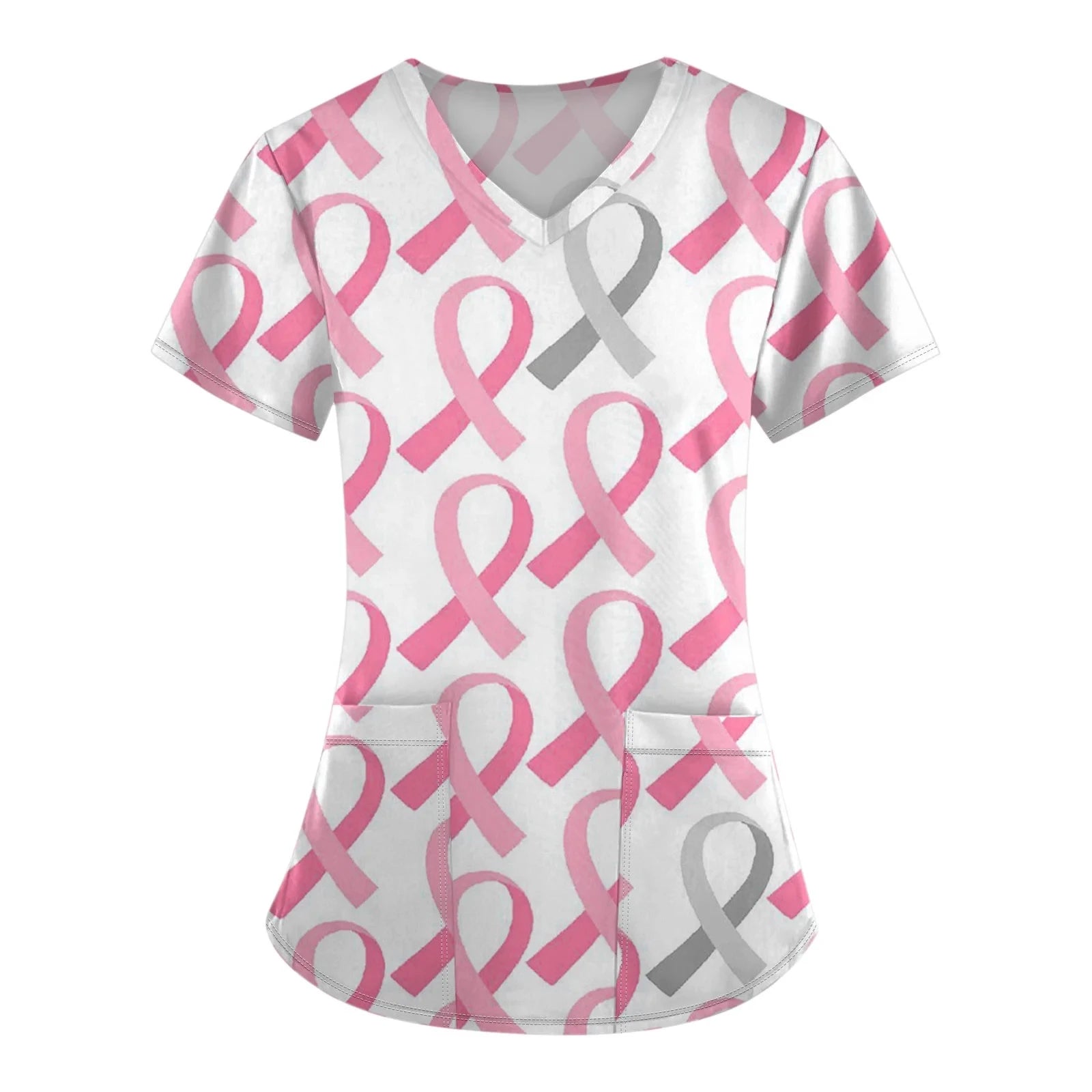 Scrub Medical Woman Breast Cancer Scrub Tops V Neck Short Sleeve
