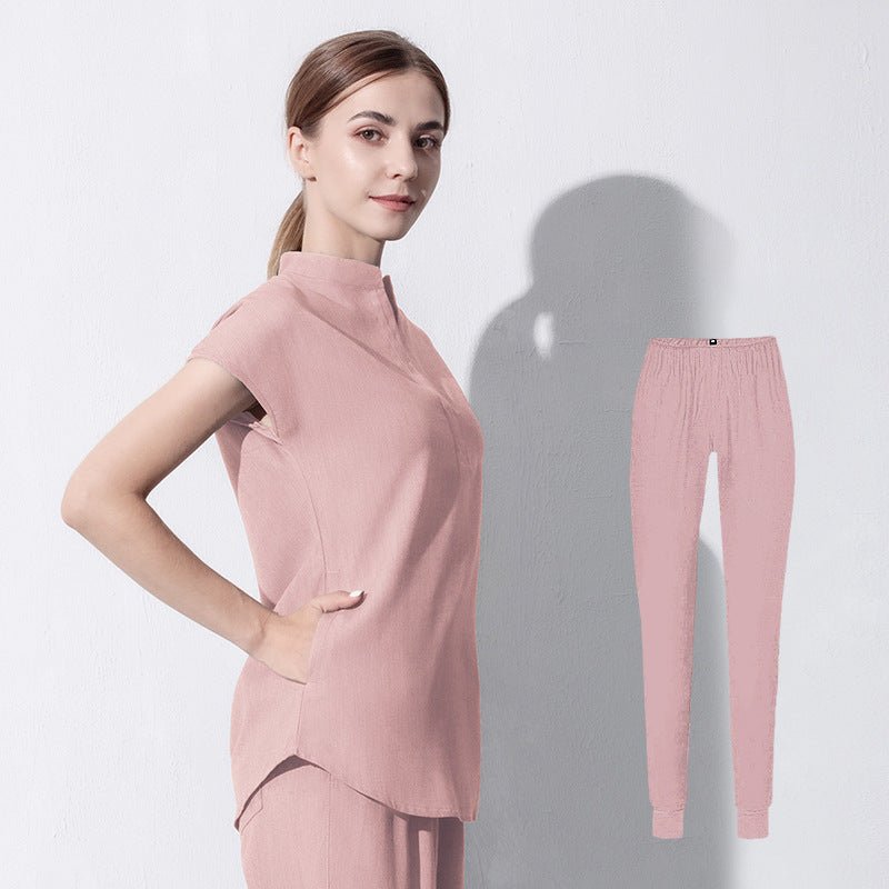Scrubs Set for Women Nurse Uniform Jogger Suit Stretch Top & Pants with Multi Pocket