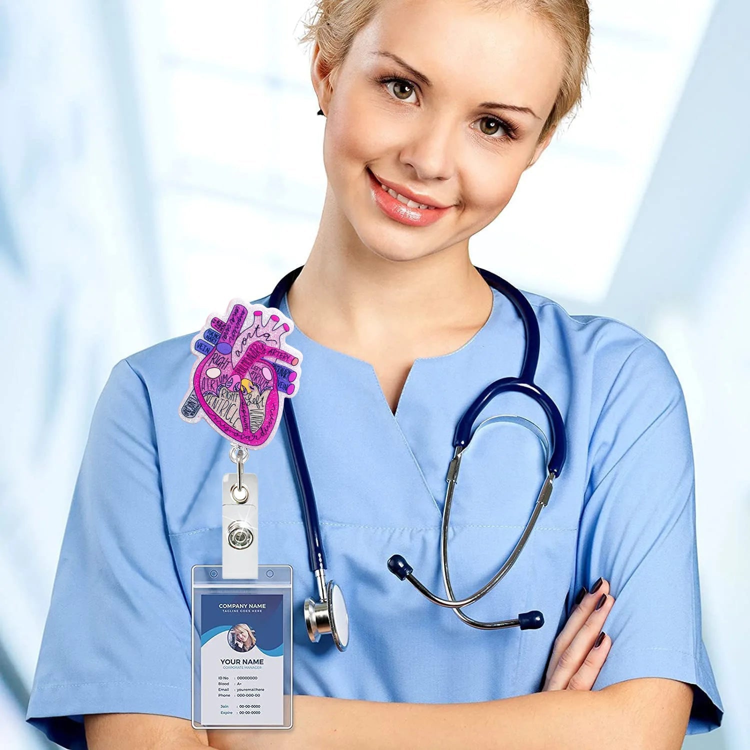New Arrival Nurse Badge Reels Retractable Badge Holders With Alligator Clip Organ Heart Id Badge Clip For Doctor Nursing Student