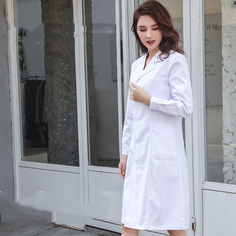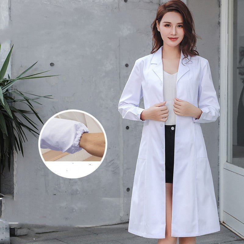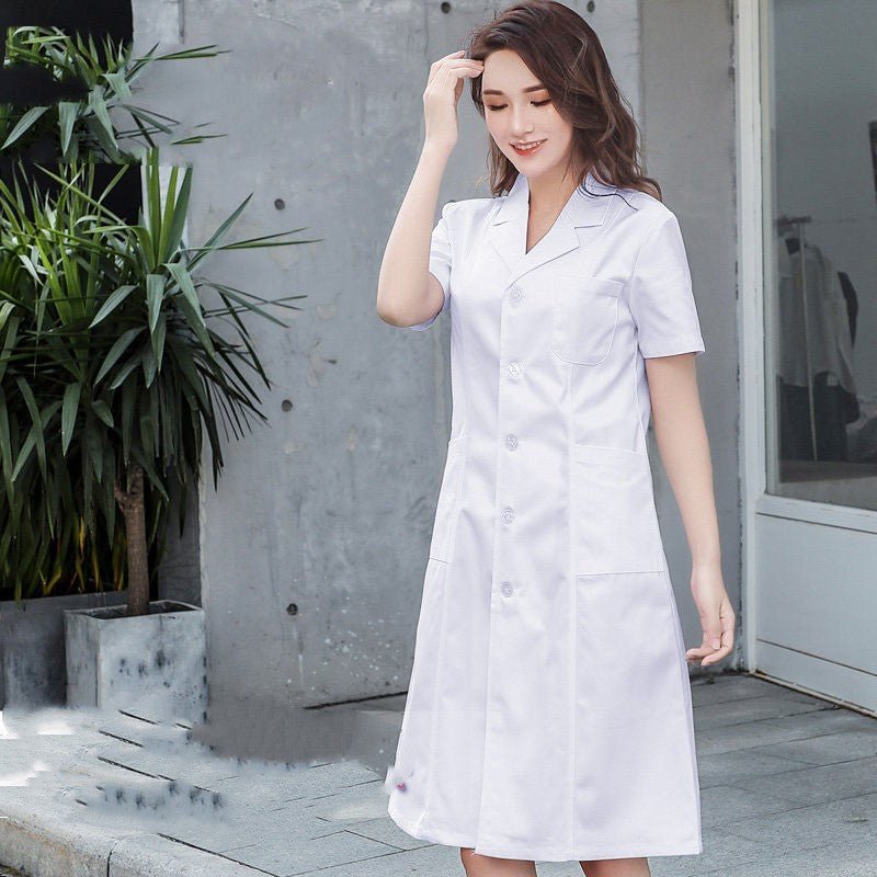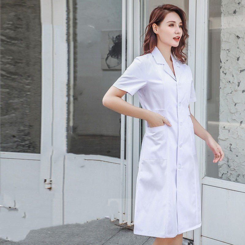 White Coat Long Sleeve Doctor Female Nurse Dress Short Sleeve Lab Coat