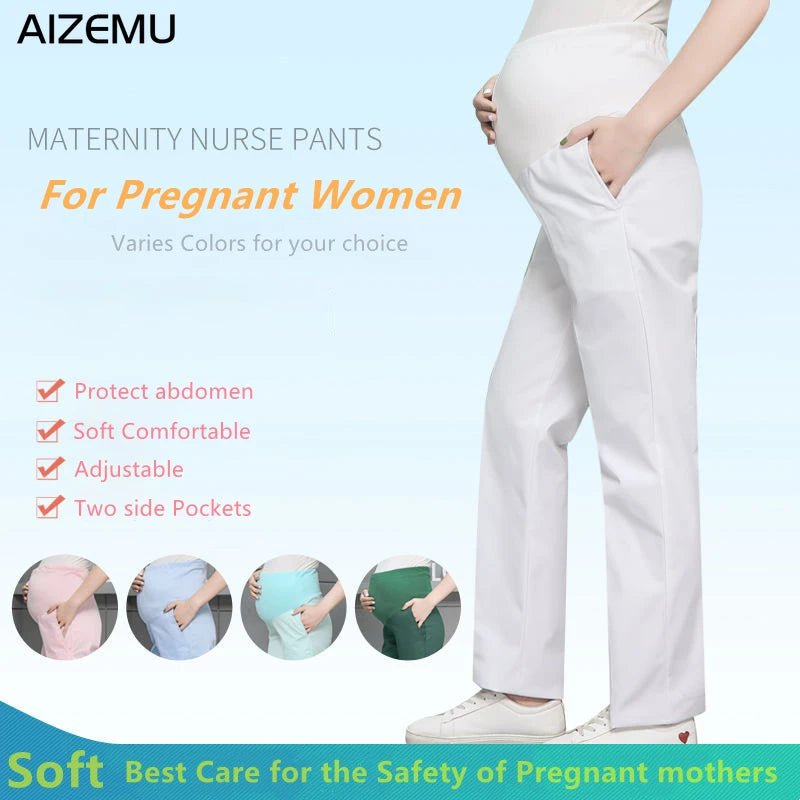 Maternity Loose Nurse Pants Breathable Solid Color Work Pants Doctor Nurse Uniform Pants